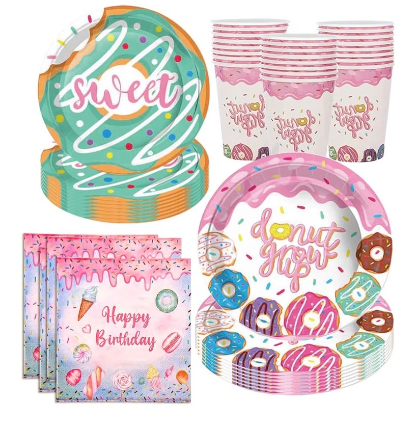 16 9 inç yemek tabağı 16 7 inç yemek tabağı 16 kağıt bardak 20 kağıt havlu 【16 misafir için hizmet】Donut parti yemek takımları 16 adet 7 inç pembe tatlı kağıt tabağı, 16 adet 9 inç pembe tatlı kağıt tabağı, 16 pembe tatlı peçetesi, 16 pembe tatlı bardağı, toplam 64 adet 16 misafir servis eder. 【Benzersiz tasarım】Pembe tatlı çatal bıçak takımı renkli çöreklerle tasarlanmıştır, bu da çok sevimli ve canlıdır, partinizin çok tatlı ve güzel görünmesini sağlar. Böylece arkadaşlarınız ve ailenizle bu pembe at temalı partide daha fazla zaman geçirebilirsiniz. 【Yüksek kalite】Kalın ve sert pembe donut parti tabağı ve bardaklar yemek teslim edildiğinde katlanmaz. Bu kağıt tabaklar yüksek kaliteli ve gıda maddelerine uygun kağıttan üretilmiştir, partiler için mükemmel bir seçimdir.