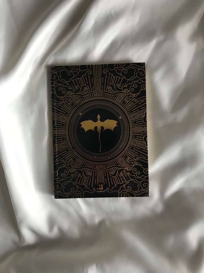 Altın renk ejderha ve detaylı desenlerle süslenmiş siyah kapaklı