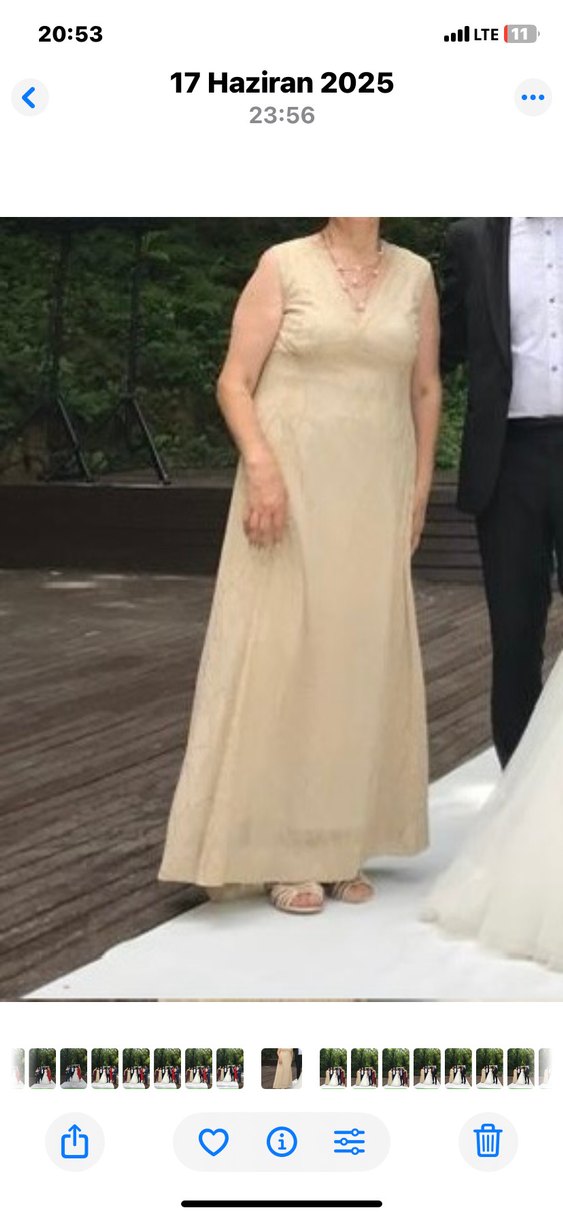 Dore ışıltılı renkleri olan, V yakalı kolsuz ve abiye elbise. uzun boy, klasik ve bohem vintage tarzda, düğünler için uygundur. Tertemizdir bir defa giyildi