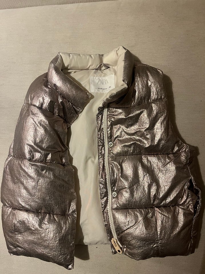 Parlak çok şık duran bir yelek ✨hediye geldi ancak kızıma tam oluyordu bu yüzden çok az kullanabildik.. bazı yerlerinde renk atması olmuş metalik kıyafetlerde bu hep oluyor ancak farkedilmiyor bile yanar döner olduğu için bir de fermuar başında ufak bir renk atması var fiyatı uygun tuttum