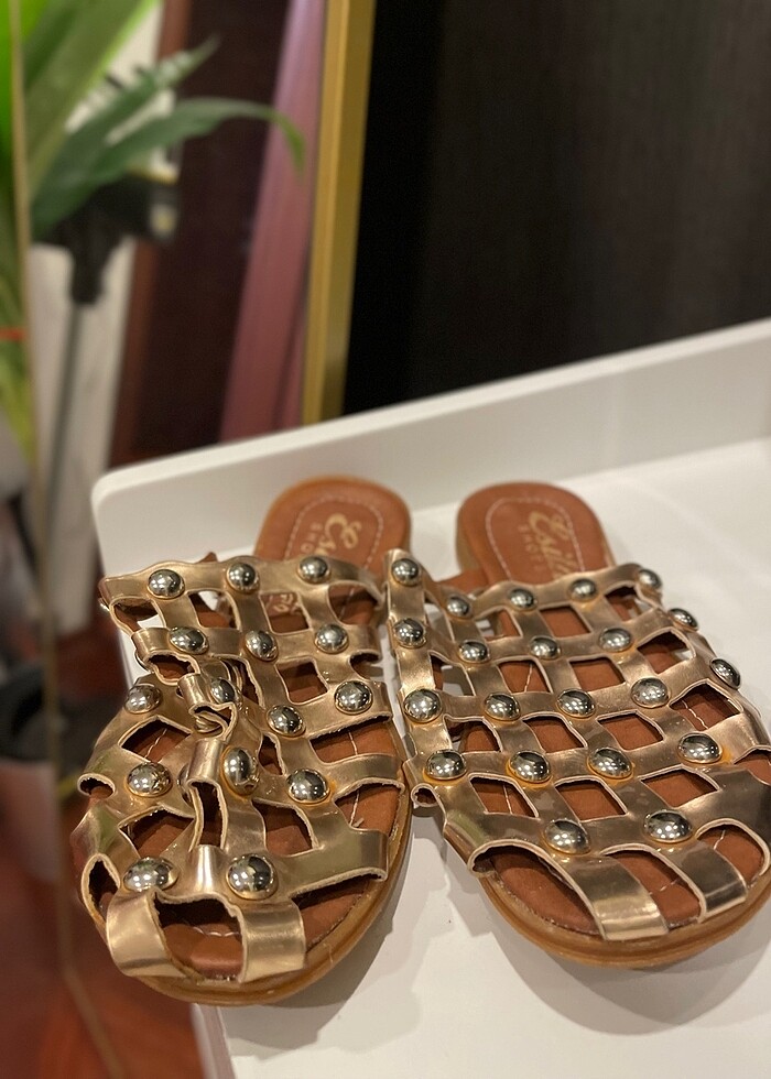 Esila shoes marka dore renk 37 numara şık terlik, üzerinde gümüş eengi zımbaları mevcut, sorunsuz