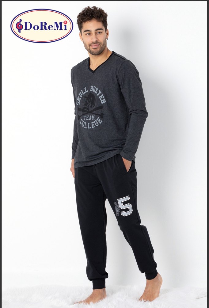 DoReMi Erkek Homewear Pijama Takımı Gri Baskılı Erkek Pijama