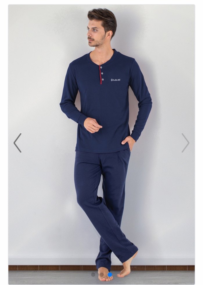 Doremi Lacivert Erkek Pijama Takımı, Regular Fit, Uzun Kollu