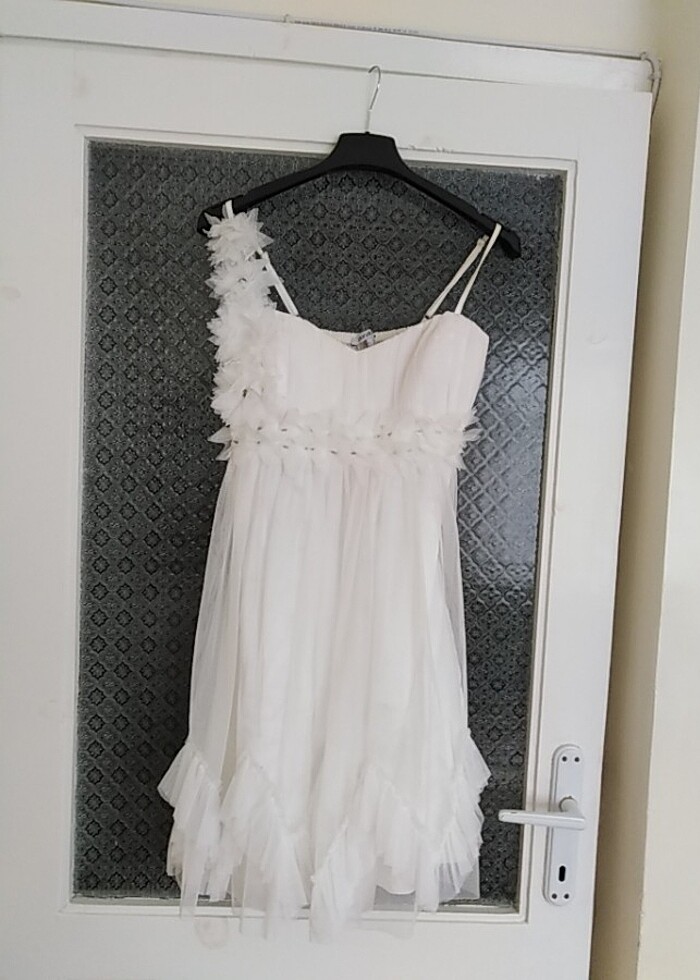 Astarlı yepyeni iki koltuk arası 40 cm boy 87 cm 40 beden abiye elbise zayıf bayanlar için ve o dört on beş yaş çocuklar için