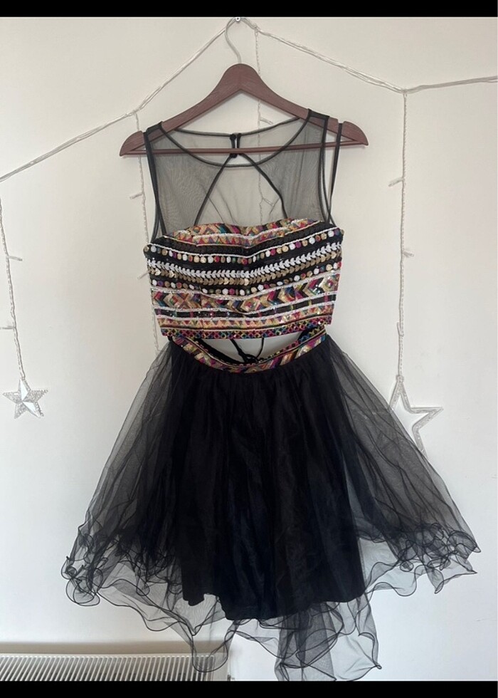 Etek boyu 55, Bel 34, Büstiyer boyu omuzdan itibaren 35 cmdir. Kadıköyden farklı tasarım ve el işçiliği yüksek gece elbiseleri satan bir ten almıştım. 1 defa kullanıldı tertemiz hiçbir yerinde en ufak bir kusur yoktur. Son fotoğraftaki tülü kendim yapmıştım bileğe bağlamak için üstüne de çiçek yapıştırmıştım. Onu da göndereceğim dilerseniz kullanırsınız güzel duruyor.