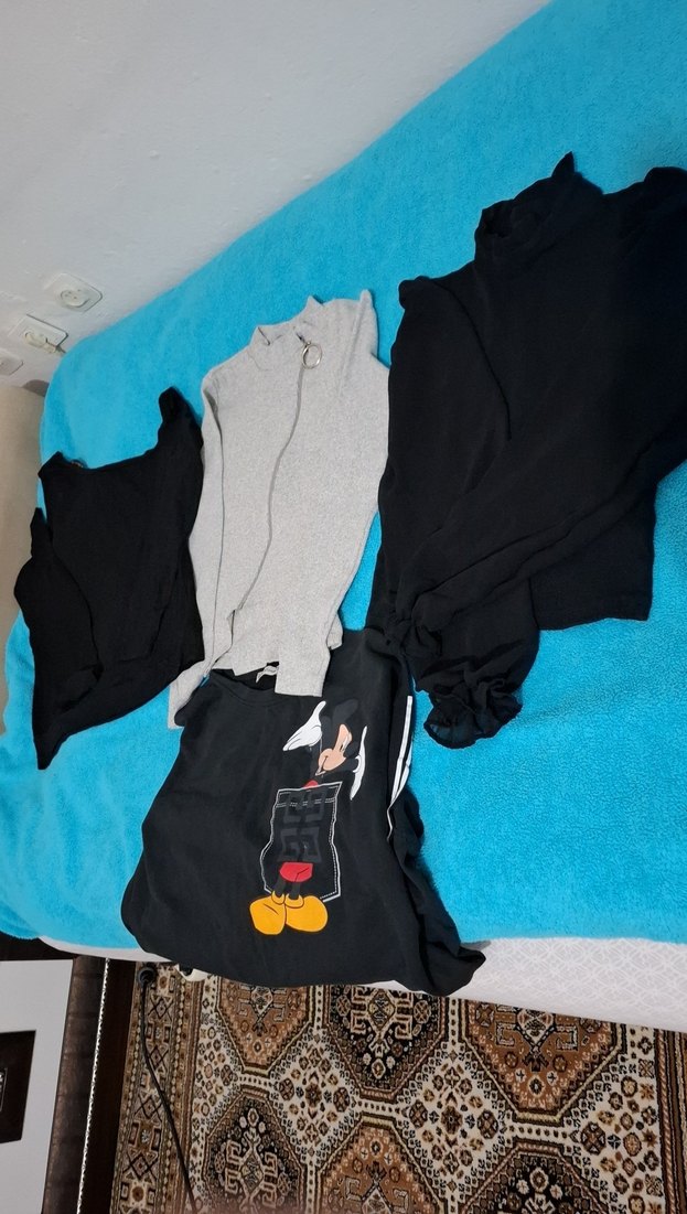 Siyah , desen içermeyen sade tasarımıyla zahmetsiz şıklık sunar. Dört tane değişik bluz sweatshirt S-M beden tek fiyat 130 lira