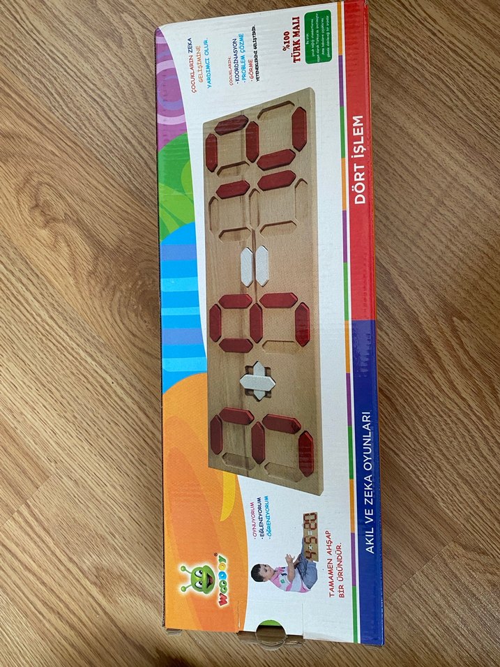 Ahşap sayılar ve sembollerle dört işlem pratiği yapmaya yönelik akıl ve zeka oyunu. Matematik becerilerini geliştirir.