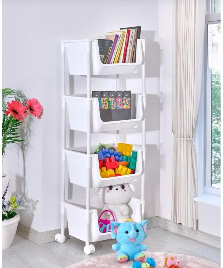 dört katlı, tekerlekli organizer , banyoda, mutfakta veya çocuk odasında kullanılabilir işe yarar bir ürün