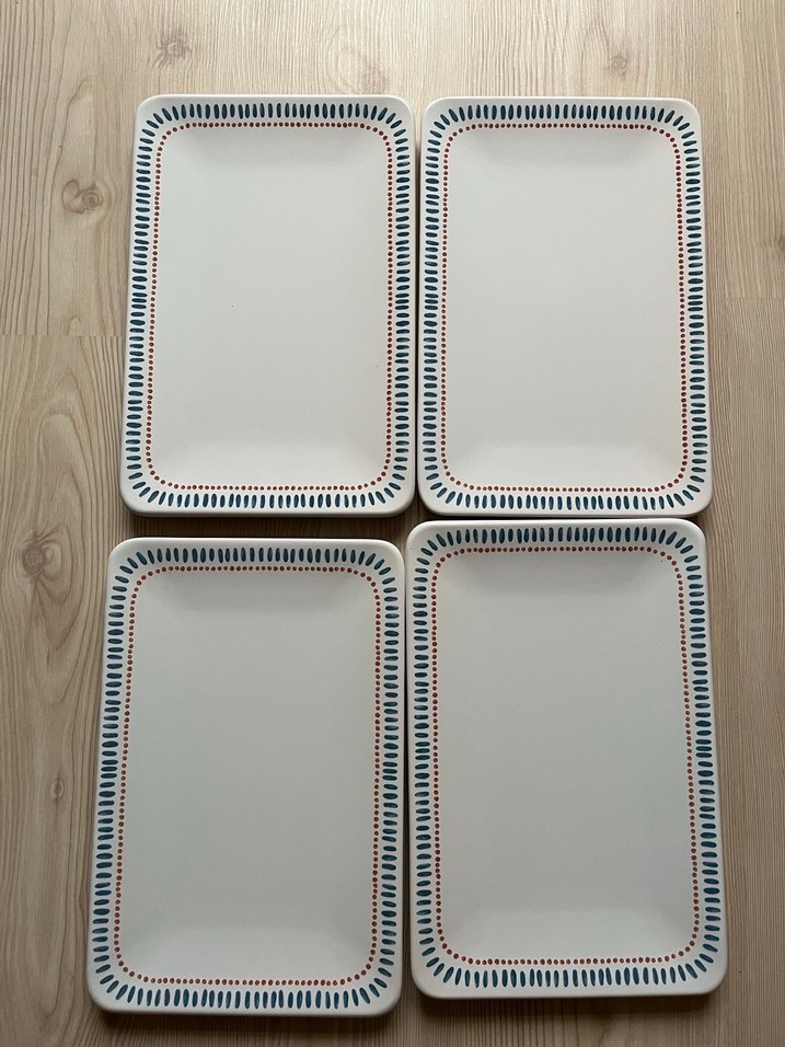 Dört Parça Desenli Beyaz Dikdörtgen Tabak Seti