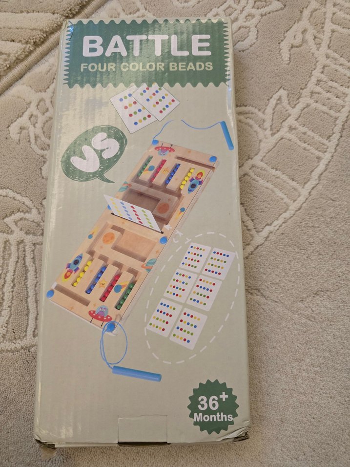 Dört renk boncuk ve oyun kartları içeren, 36 ay ve üzeri çocuklara uygun eğitici oyuncak.