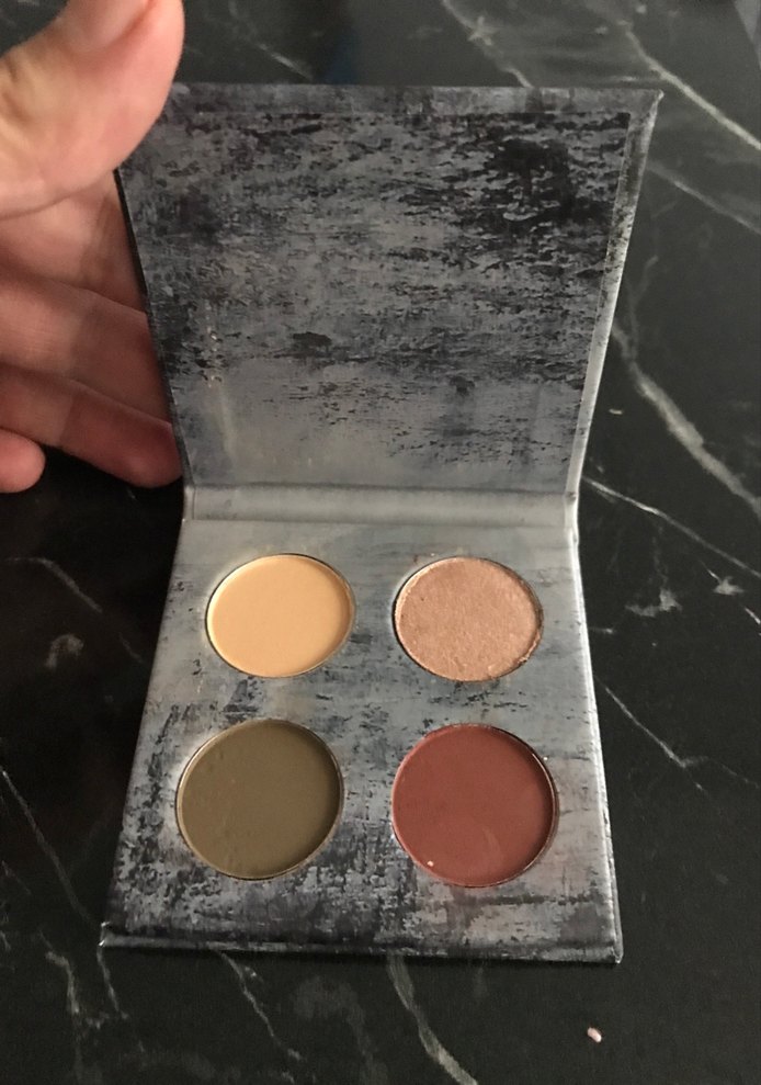 Bej, kahverengi ve yeşil tonlardan oluşan dört renkli göz farı paleti. Kompakt tasarımıyla taşınması kolaydır.
