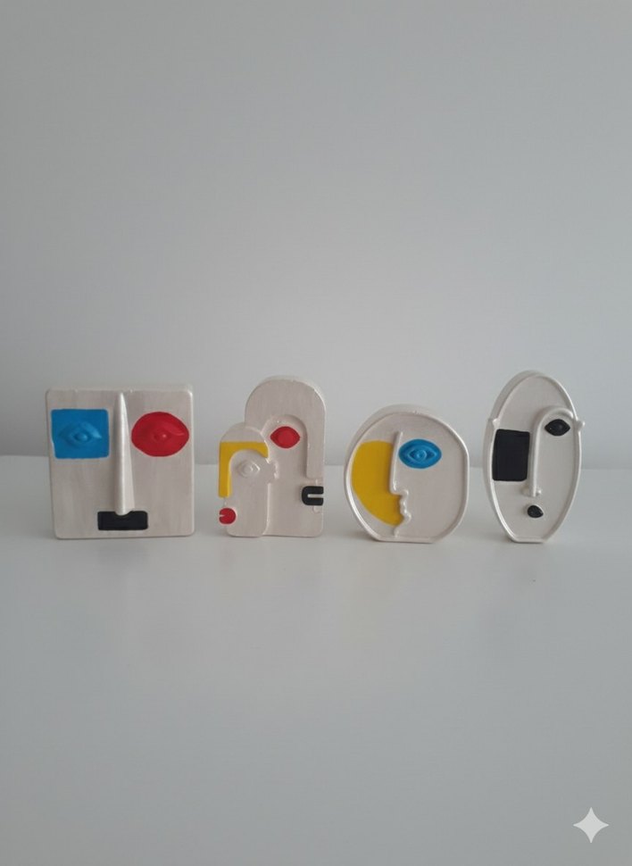 Taş tozundan üretilmiş, modern ve minimalist tasarıma sahip soyut yüz figürleri yaşam alanlarınıza sanatsal bir dokunuş katar. Yumuşak pastel tonları ve geometrik formlarıyla salon, çalışma odası, ofis ve raf dekorasyonu için idealdir. Her bir figür el yapımıdır ve özenle boyanmıştır. Minimal dekorasyonu sevenler, modern ev stilini tamamlamak isteyenler ve özgün hediye arayanlar için şık bir tercihtir. Ürün Özellikleri Taş tozundan üretilmiştir El yapımı ve el boyamasıdır Minimal & modern tasarım Set / tekli kullanım için uygundur İç mekân dekorasyonu için idealdir Kullanım Alanları Salon & oturma odası Kitaplık, raf ve konsol üstü Ofis & çalışma alanı Hediye seçeneği El yapımı ürün olduğu için renk tonlarında ve yüzey dokusunda çok küçük farklılıklar olabilir. Bu durum ürünü benzersiz kılar. Uzunluklari 8,9,10,10 cm #bohem #minimalist #soyutyuz #iskandinav #handmade #dekoratifurun #biblo