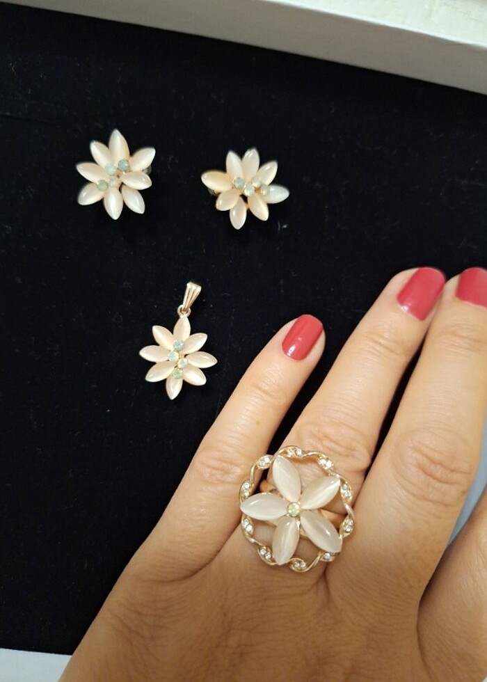 Bir adet celik gold zincir . Bir adet somon rengi lotus çiçekli üçlü set