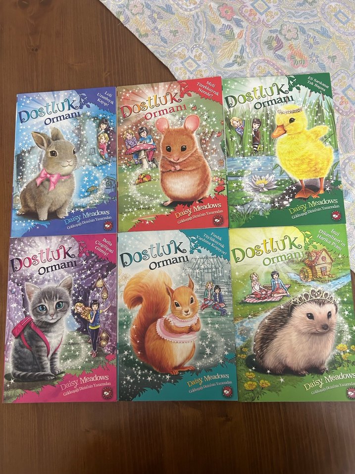 İlk 6 kitaptır kitaplarda hiçbir hasar yoktur yeni kitap almak için satıyoruz Dostluk Ormanı serisi, her biri farklı hayvan kapaklı altı çocuk kitabından oluşur. Kitaplar, ormanda dostluk ve macera temalarını işler.