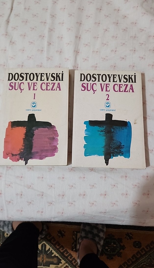 Dostoyevski'nin "Suç ve Ceza" adlı romanının 1 ve 2. ciltleri, Cem Yayınevi tarafından yayımlanmış. Klasik edebiyat seti.