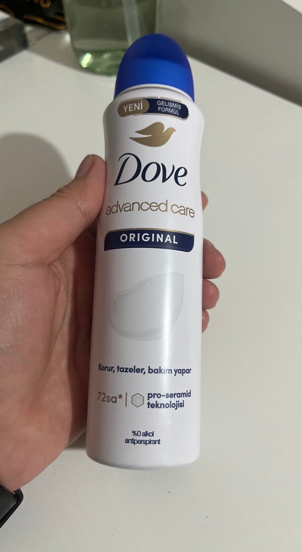 Dove Advanced Care Original deodorant, pro-seramid teknolojisi ve %0 alkollü formülü ile 72 saat koruma, tazelik ve bakım sağlar.