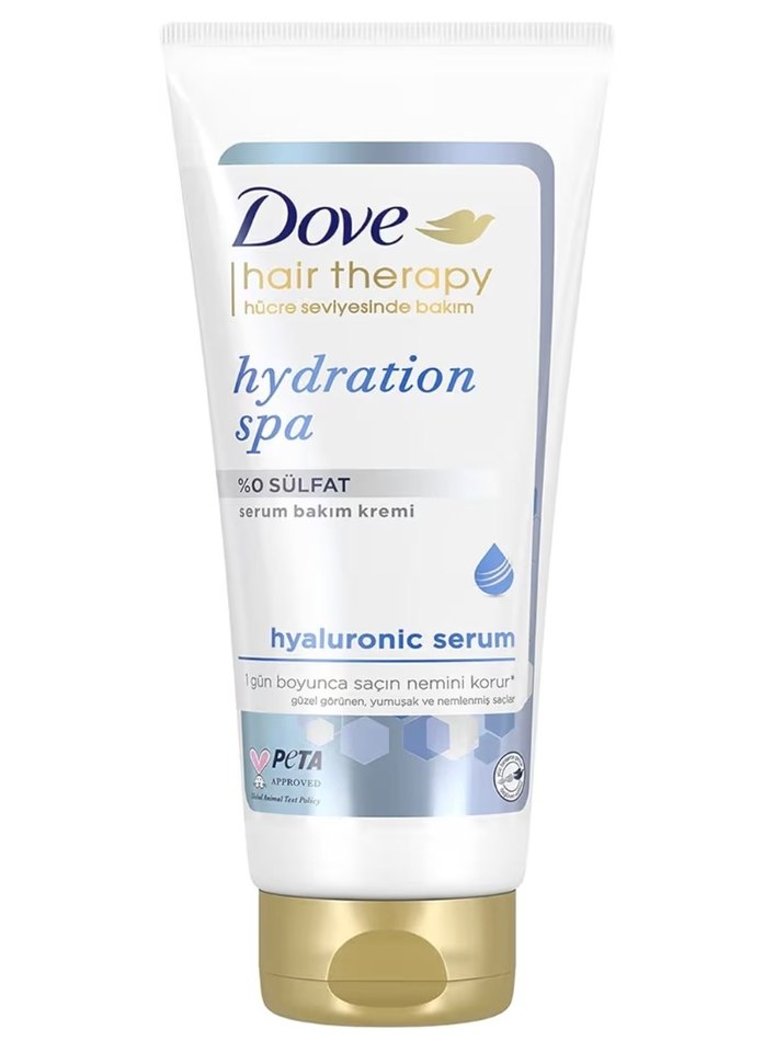 Dove Hair Therapy hydration spa serum bakım kremi, saçın nemini gün boyu korur. Sülfatsız formülüyle yumuşak ve nemli saçlar sağlar.