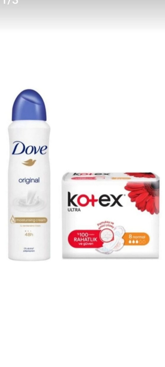 Dove Original deodorant, nemlendirici krem ile 48 saat ferahlık sağlar. Kotex Ultra pedler rahatlık ve güvenilir koruma sunar.