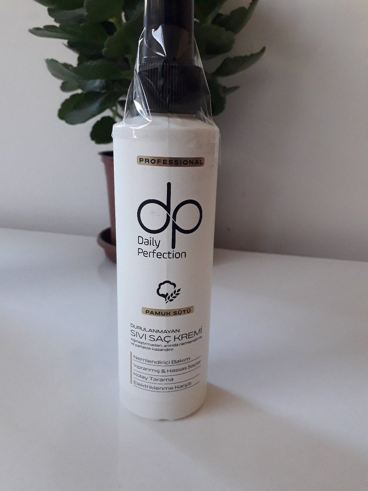 DP Daily Perfection pamuk sütü içeren durulanmayan saç kremi, saçı besler, nemlendirir ve koruma sağlar. Sıfır üründür açılmamıştır. Ihtiyaç fazlasıdır
