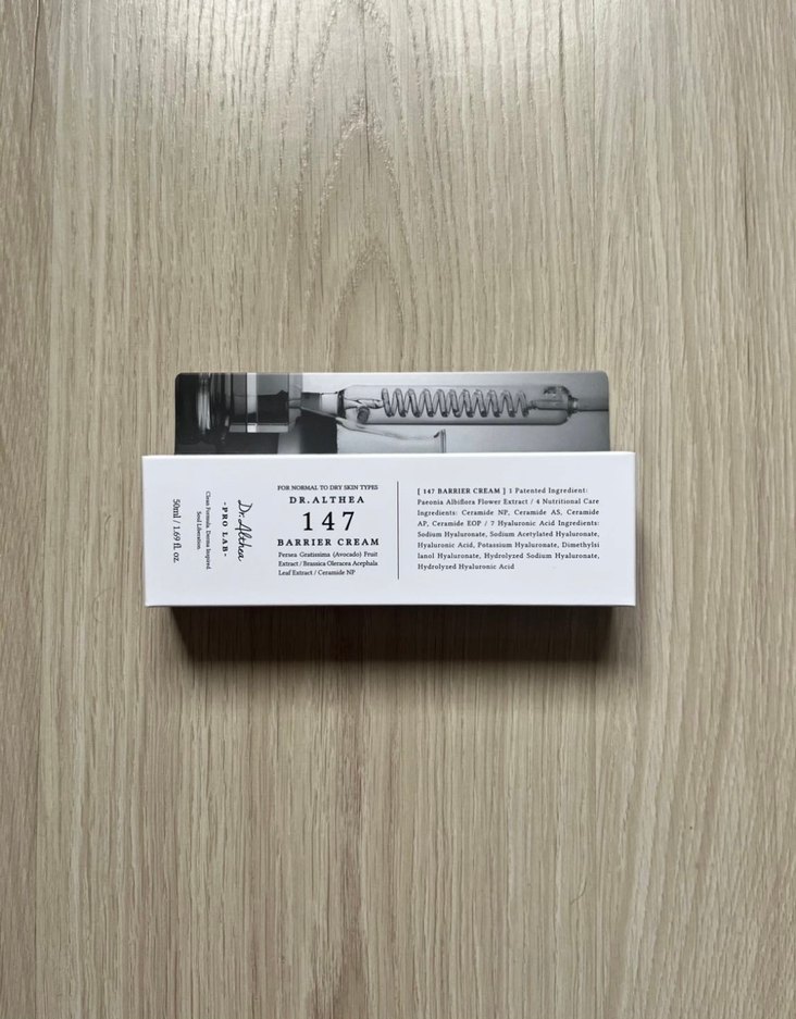 DR.ALTREA 147 Bariyer Krem, Pantenol ve Hyaluronik Asit gibi bileşenlerle cildi korur ve nemlendirir. Cilt bariyerinin onarımını destekler.