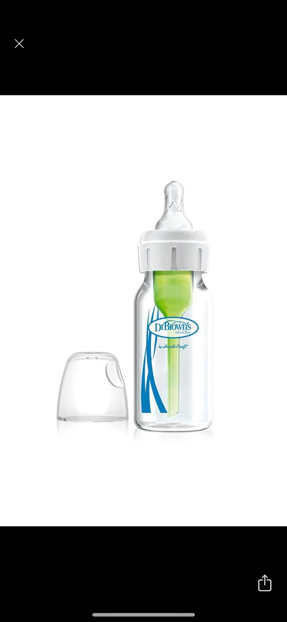 Dr. Brown's beyaz bebek biberonu, kolik ve gazı azaltan havalandırma sistemi içerir. Şeffaf koruyucu kapak ve yumuşak silikon emzikle birlikte gelir.