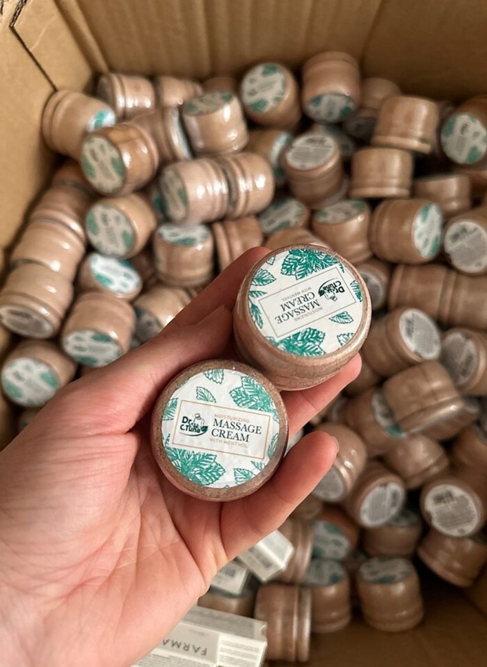 Dr. C markalı, migren taşı . Küçük kaplarda sunulan, cilt bakımı ve rahatlama için uygun krem.