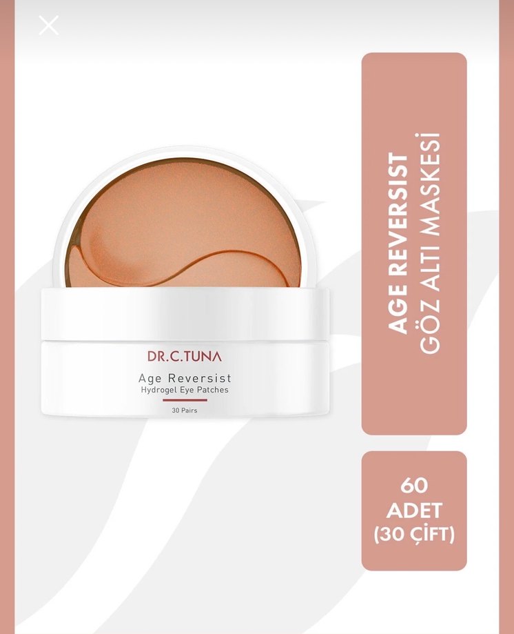 Bej renkte Dr.C.Tuna Age Reversist göz altı maskesi, 60 adet (30 çift) hidrojel yama içerir.