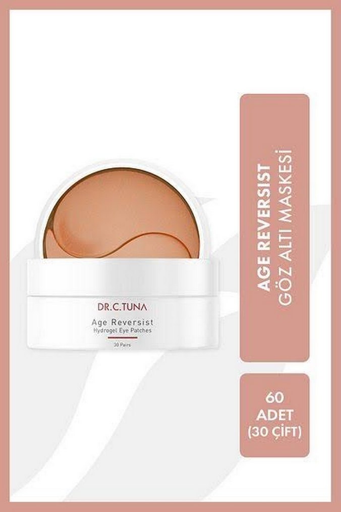 Dr.C.Tuna Age Reversist göz altı maskesi, 60 adet (30 çift) pastel bej renkte, göz çevresini nemlendirip canlandırmaya yardımcı olur.
