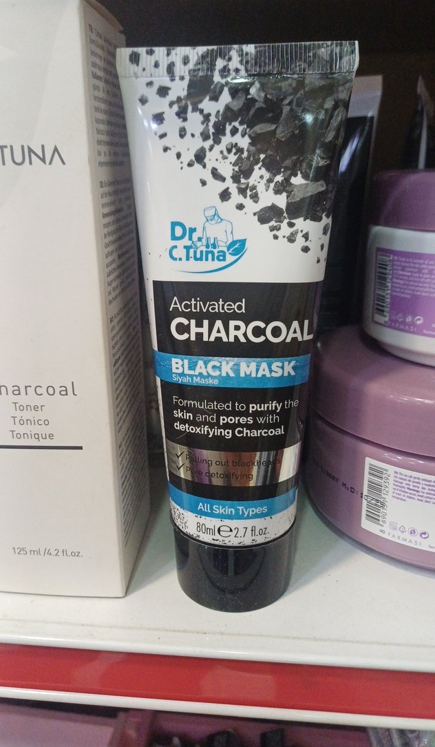 Dr. C. Tuna Aktif Karbon Siyah Maske, detoks etkili karbon ile cildi ve gözenekleri arındırır, tüm cilt tipleri için uygundur.