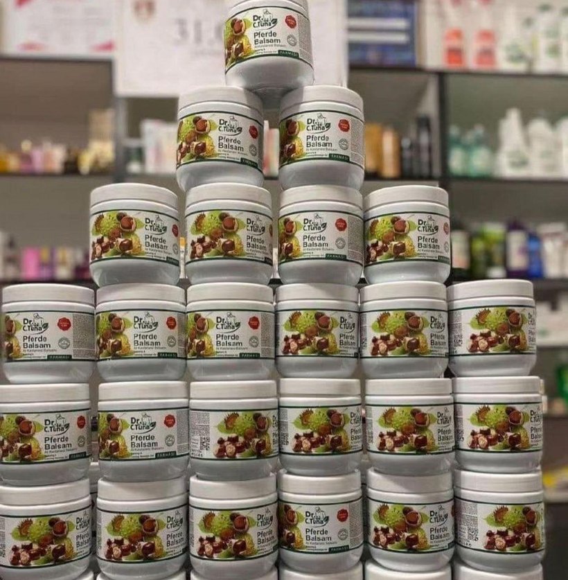 Dr. C. Tuna Pferde Balsam, at kestanesi özlü, cildi rahatlatıp ferahlatan bir balsamdır. Beyaz kavanozda, yeşil ve kahverengi etiketlidir.