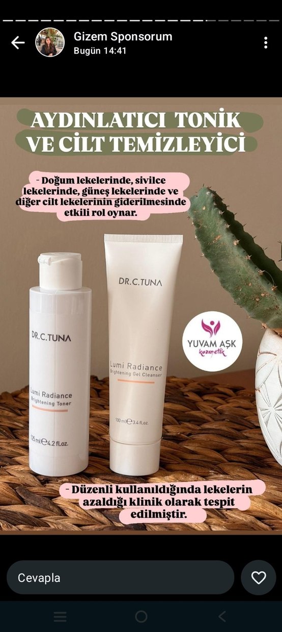 Dr.C.Tuna'nın aydınlatıcı tonik ve jel temizleyicisi, doğum lekeleri, sivilce ve güneş lekeleri gibi cilt lekelerinin azalmasına yardımcı olur.