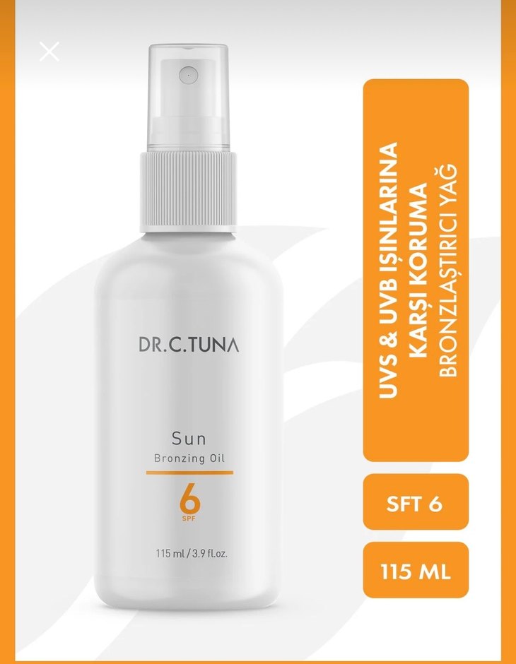Dr.C.Tuna bronzlaştırıcı yağ sprey SPF 6 ile UVA ve UVB ışınlarına karşı koruma sağlar ve bronzlaşmayı destekler. 115ml sprey şişede.lutfen fiyat sorunuz