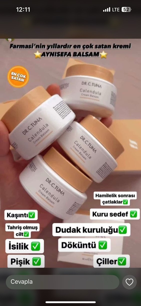 DR.C.TUNA Calendula Krem Balsam, tahriş olmuş cilt, isilik, kaşıntı, dudak kuruluğu, kuru sedef ve hamilelik sonrası çatlaklar için rahatlatıcıdır.