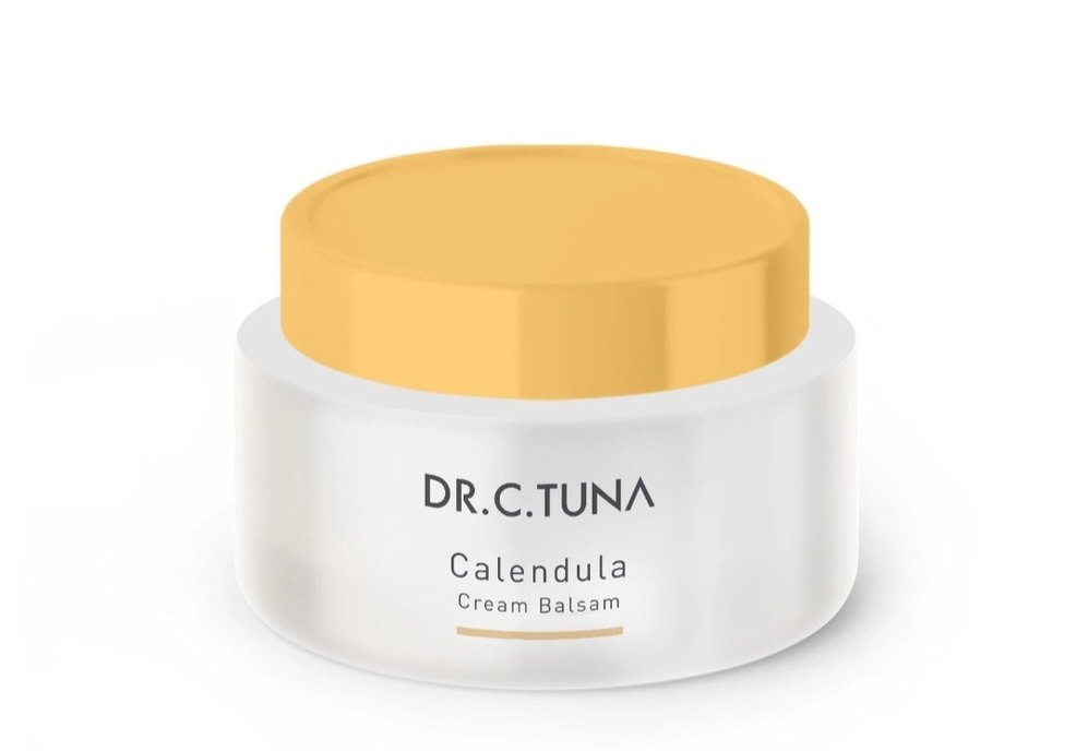 DR.C.TUNA Calendula krem balsam, pastel bej tonuyla cildi nazikçe bakım yapar. lekelerde nemlendirmede etkilidir
