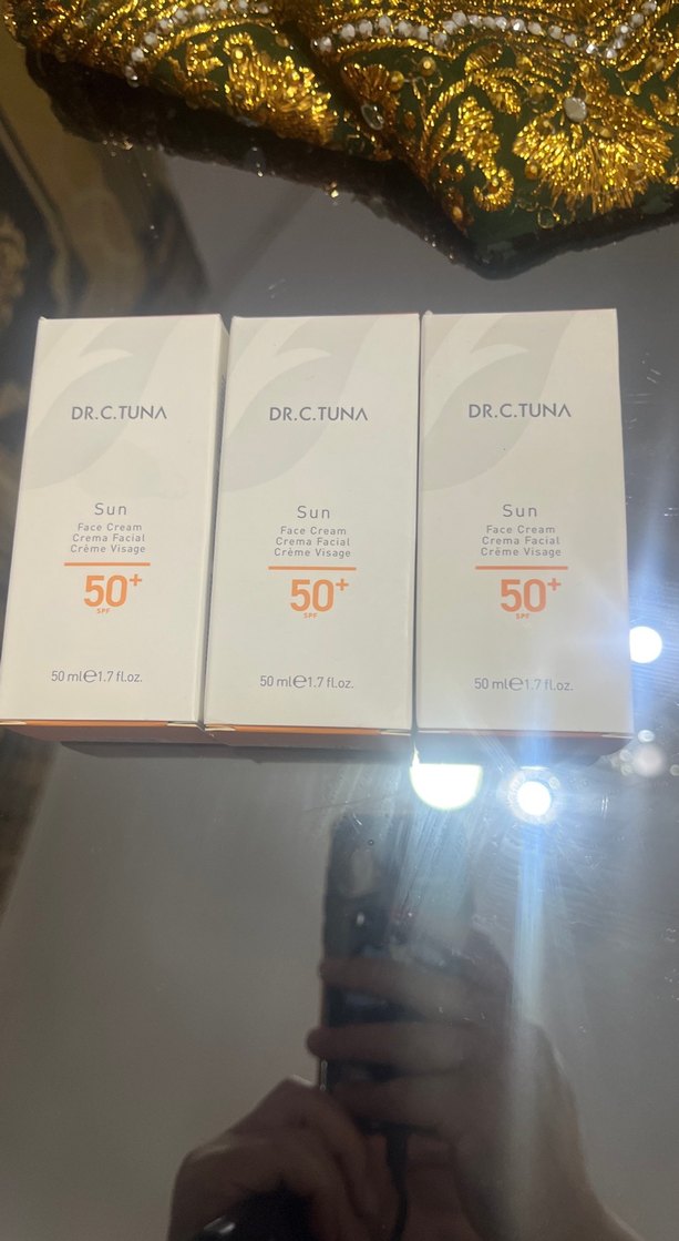 DR.C.TUNA Sun yüz kremi, 50ml şişede SPF 50+ koruma sağlar ve cildi güneşin zararlı etkilerinden korur.