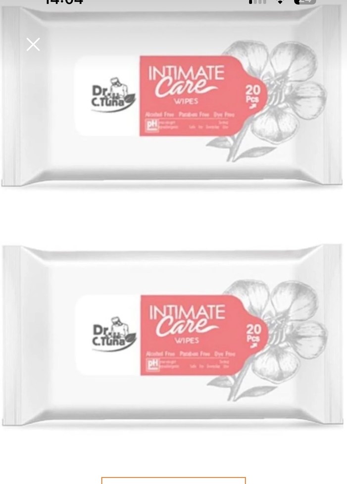 Dr. C. Tuna kadınlar için 20 adet alkol ve paraben içermeyen, pH dengeli temizleyici mendil seti. İntimate care Farmasi 2 adet
