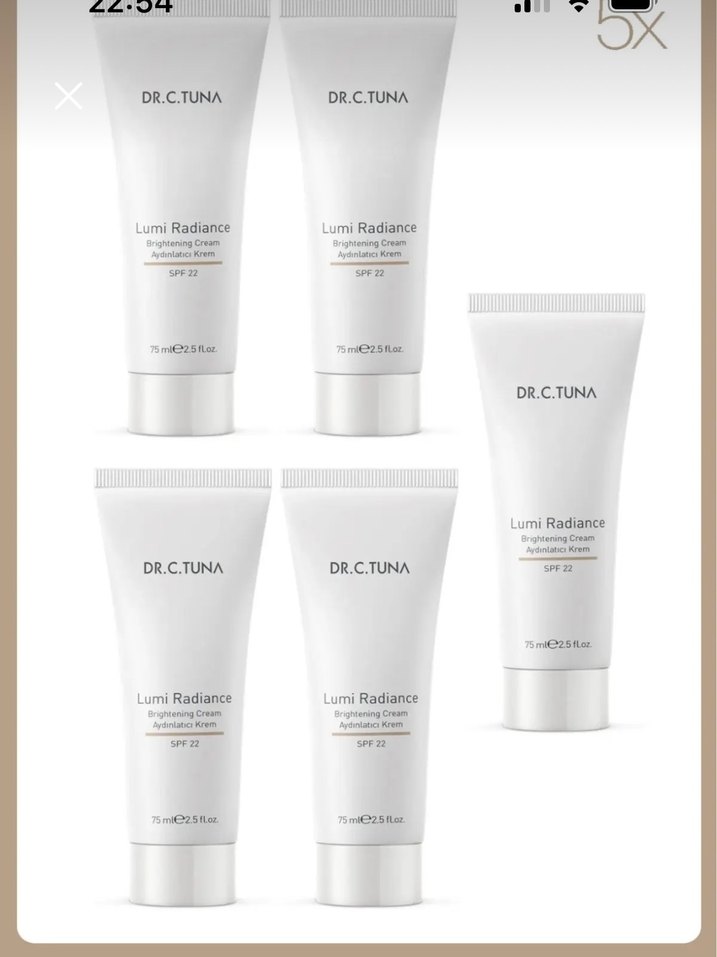 Farmasj DR.C.TUNA Lumi Radiance cildi aydınlatır ve SPF 22 ile korur. Açık ton ve 75 ml beyaz tüpte sunulur. ✨aydınlatıcı krem 5 adet