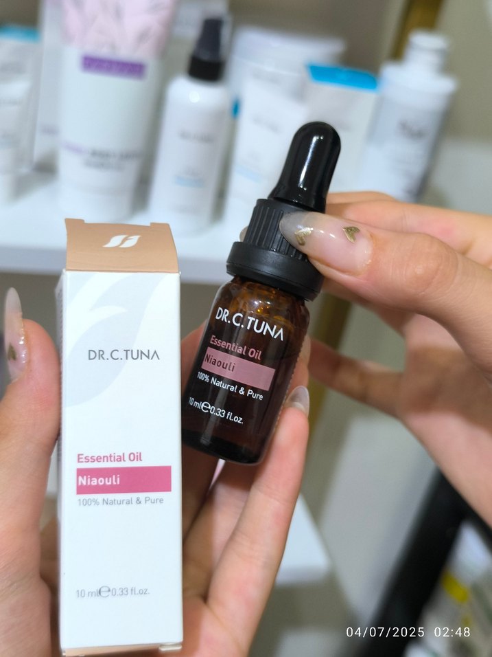 Dr.C.Tuna Niaouli esansiyel yağı, 10 ml şişede, %100 doğal ve safdır. Cilt bakımında kullanılabilir.