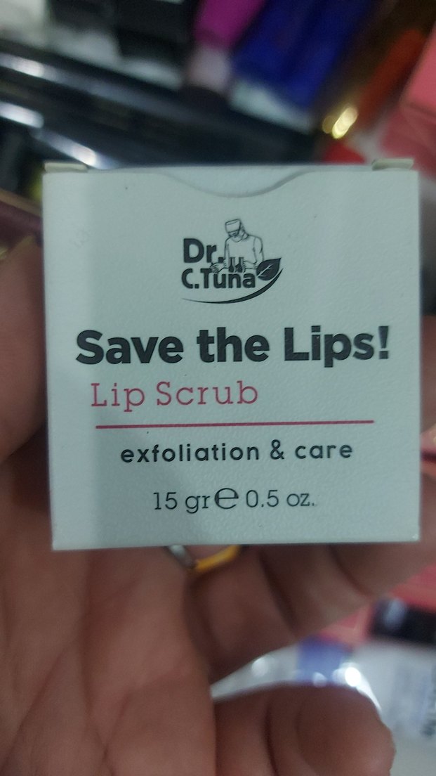 Dr. C. Tuna'nın dudak peelingi, 15 gr ambalajda parlak bej tonuyla nazikçe peeling ve bakım sağlar.