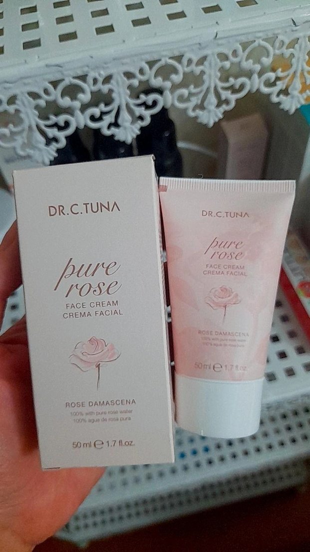 DR.C.TUNA Pure Rose yüz kremi, gül damascena özü içerir ve 50 ml tüpte nemlendirici, hafif bir koku sunar.