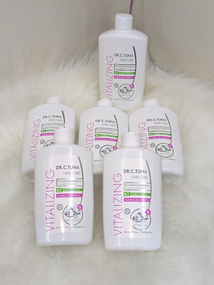 Dr. C. Tuna sarımsak özlü şampuan, saçları güçlendirmeye ve saç derisini desteklemeye yardımcı olur. Her şişe 600 ml'dir.