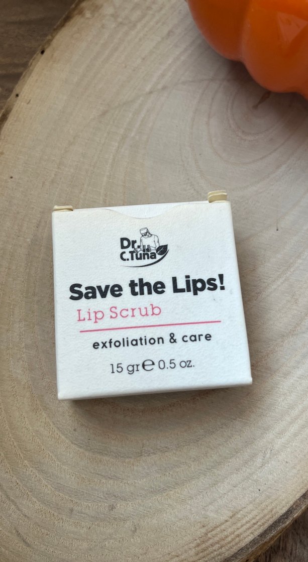 Dr. C. Tuna Save the Lips! dudak peelingi, 15 gr parlak bej ambalajda, nazik eksfoliasyon ve bakım sağlar. Ölü derileri temizleyerek dudakları yumuşatır.
