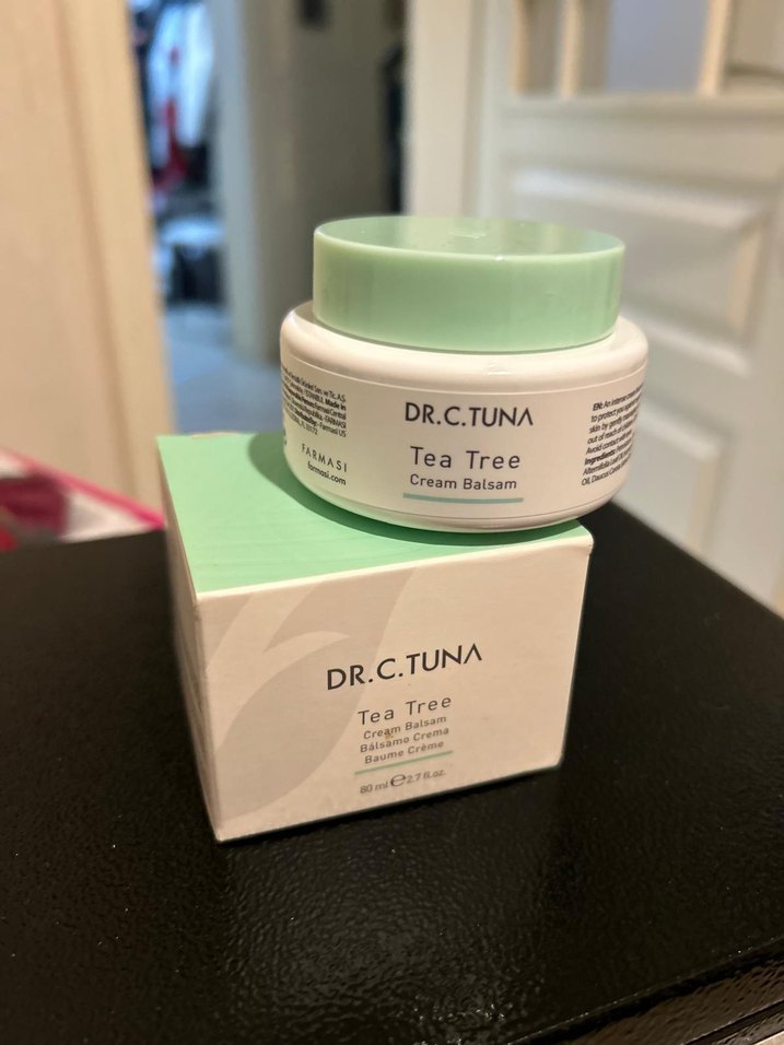 DR.C.TUNA Tea Tree Krem Balsam, çay ağacı özlü yatıştırıcı bakım sağlar. 50 ml'lik yumuşak yeşil kapaklı kutuda sunulur.