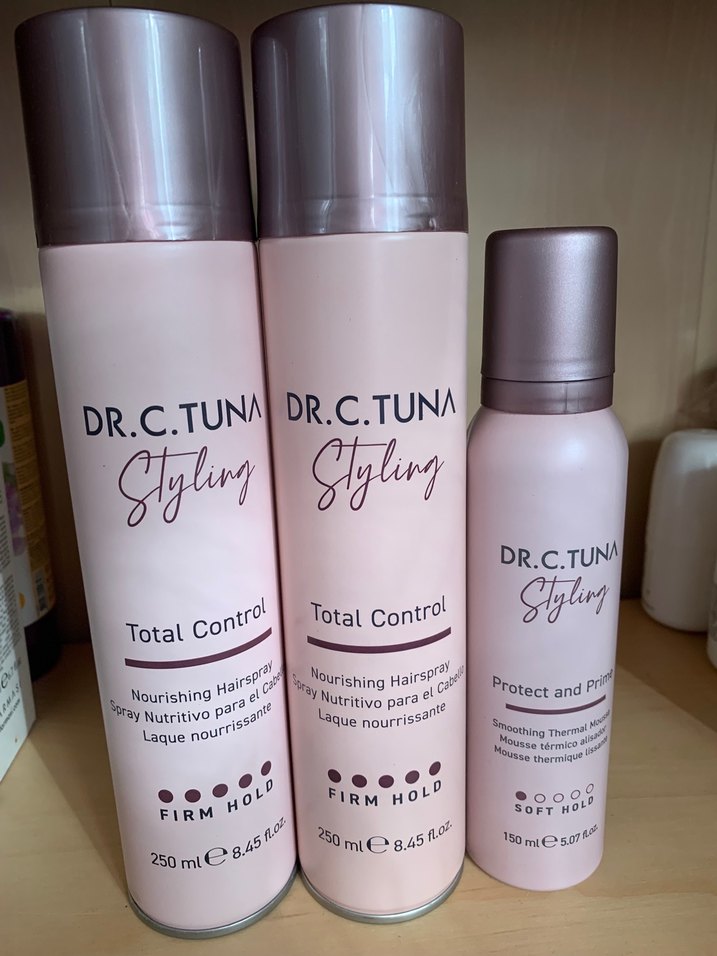 DR.C.TUNA Total Control saç spreyi ve köpüğü, besleyici formülleriyle güçlü ve yumuşak tutuş sağlar.