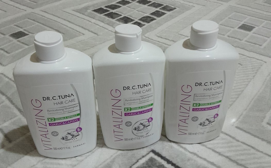 Dr.C.Tuna Vitalizing Sarımsak ve Capixyl içeren, çift etkili saç bakım ve canlandırıcı şampuan. 500 ml şişede sunulur.