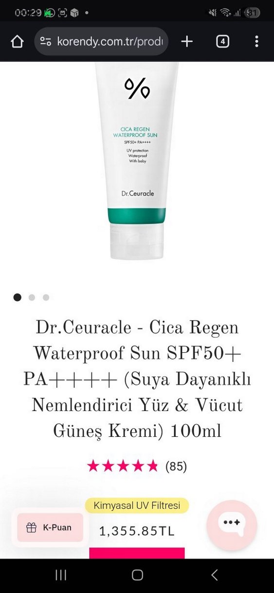 Dr.Ceuracle Cica Regen Suya Dayanıklı Güneş Kremi korendy kore
