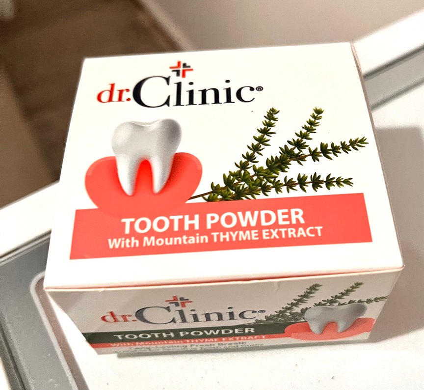 Dr.Clinic diş tozu, ağız hijyenini destekleyen ve ferah nefes sağlayan dağ kekiği özü içerir.