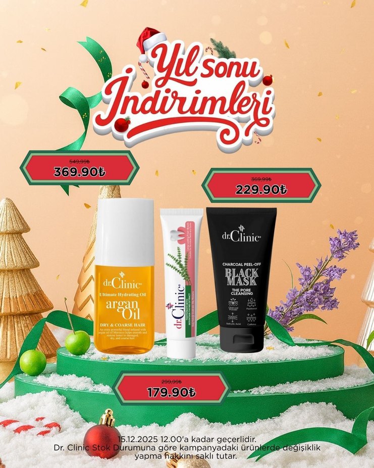 Dr. Clinic erkek cilt bakım seti, argan yağı, temizleyici maske ve diş macunu içerir. 5.12.2025 tarihine kadar yıl sonu indirimleriyle satışta.