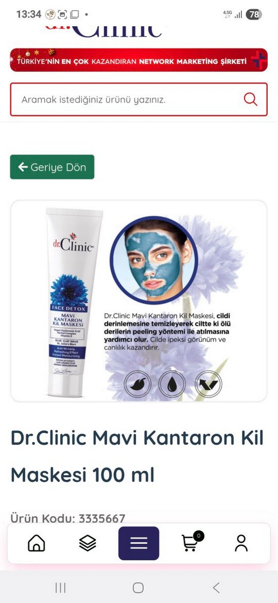 Dr.Clinic Mavi Kantaron Kil Maskesi, cildi derinlemesine temizleyerek ölü derilerin peeling yöntemi ile atılmasına yardımcı olur ve cilde canlılık kazandırır.
