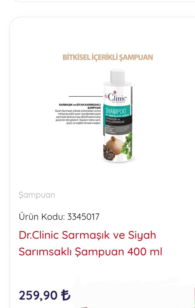 Dr.Clinic sarımsak ve siyah sarımsak özlü bitkisel içerikli şampuan, saç derisini destekler ve bakım sağlar.